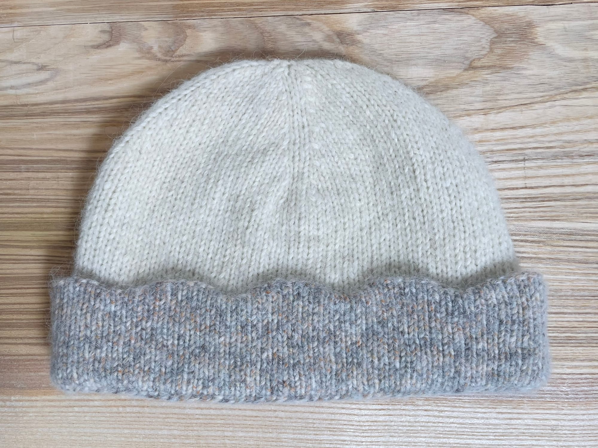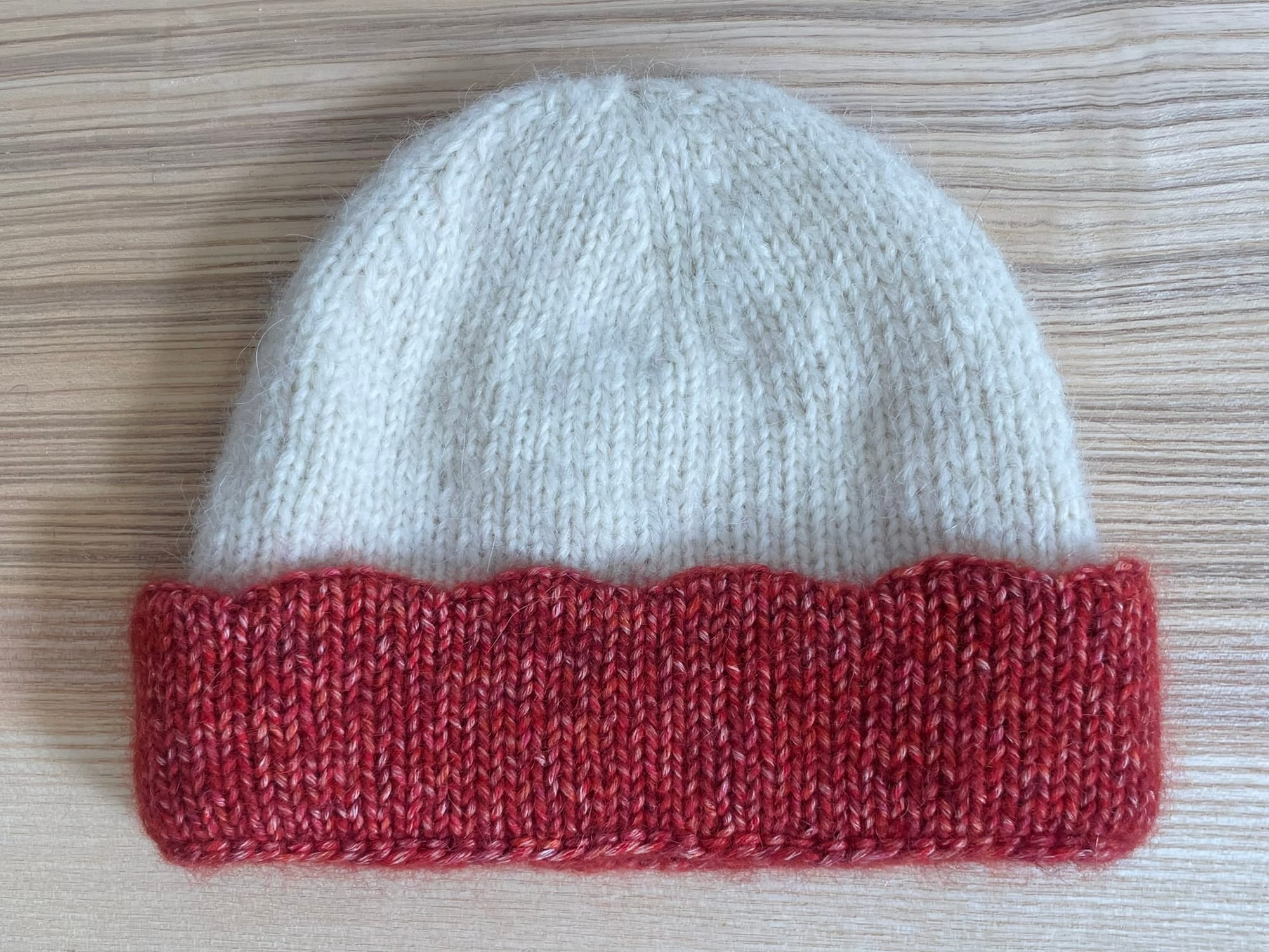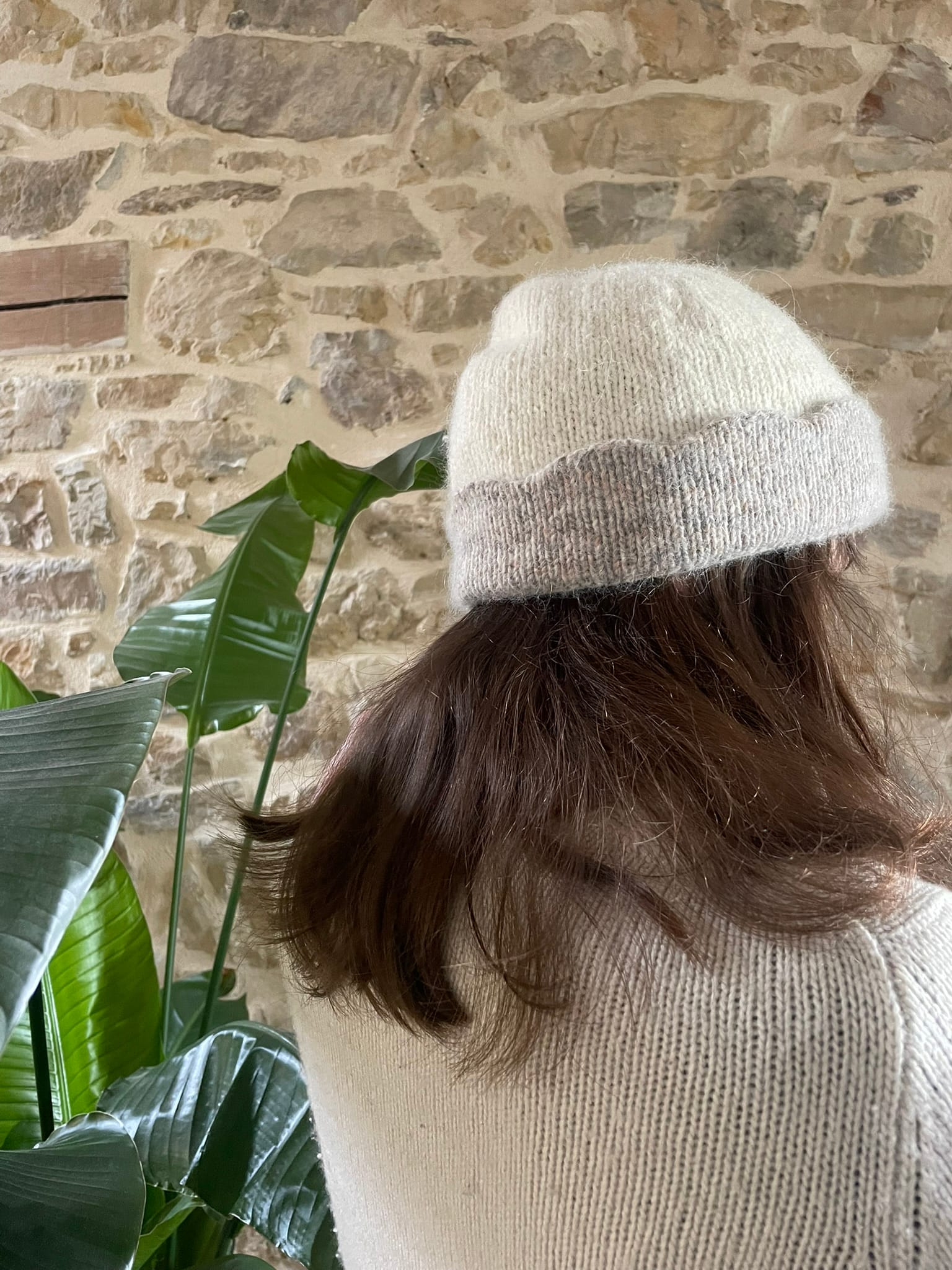 This beanie features a triple folded brim with a scalloped edge decoration. Two versions are available, one with big scallops and the other with tiny scallops if you prefer something more subtle. It is worked from the brim to the top. The crown length can be modified depending on if you like to have more or less room on top of your head.